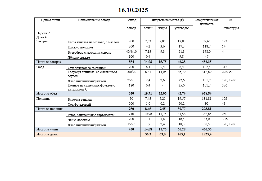 Основное (орагниазованное) меню разработано и утверждено на период двух недель с учетом режима работы Учреждения и возрастной категорией воспитанников.